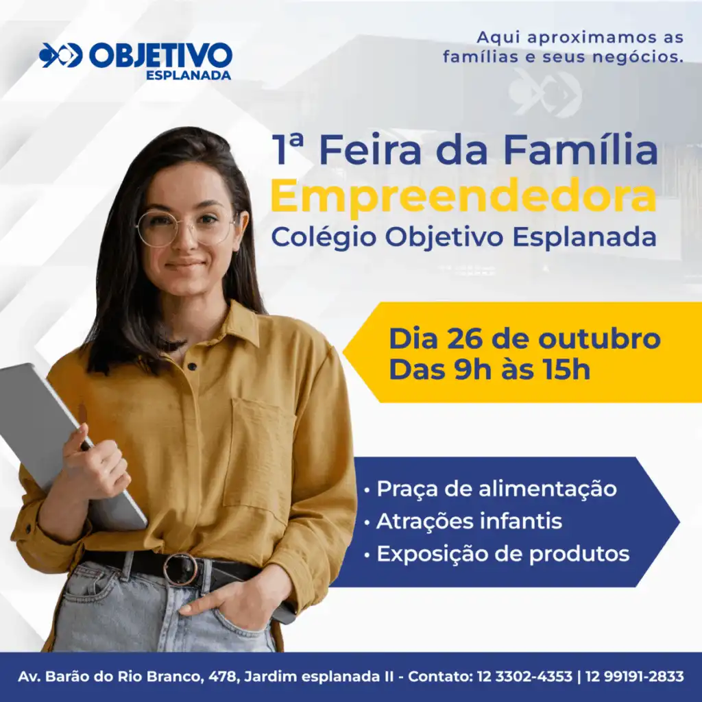 Colégio Objetivo Esplanada, que acontecerá no dia 26 de outubro, das 9h às 15h!