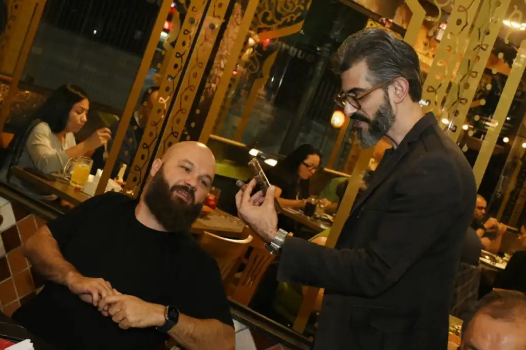 O sommelier de charutos Abdullah Soliman reuniu alguns convidados para um evento exclusivo: a primeira edição do Jantar Árabe harmonizado com charuto.
