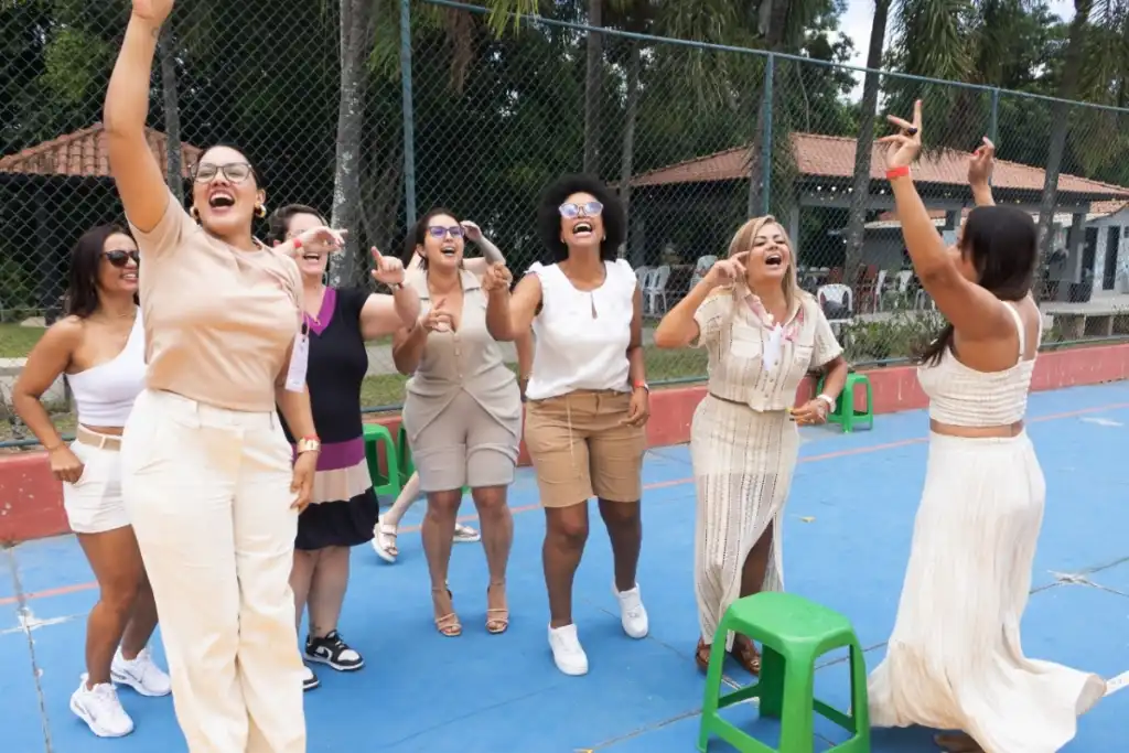 Sempre com dinâmicas, um café maravilhoso, em um ambiente alegre, mas aberto a lágrimas que nos curam e sempre tem palestras: