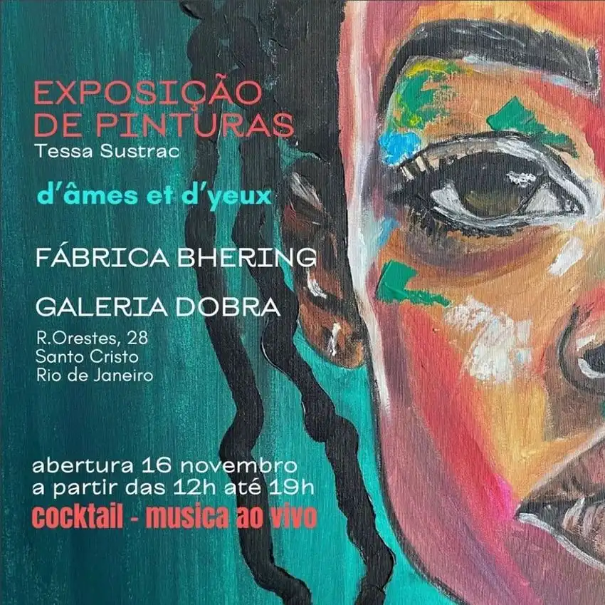 A Galeria Dobra apresenta a exposição 'd'âmes et d' yeux', com pinturas de Tessa Sustrac, contando histórias de mulheres através de seus rostos