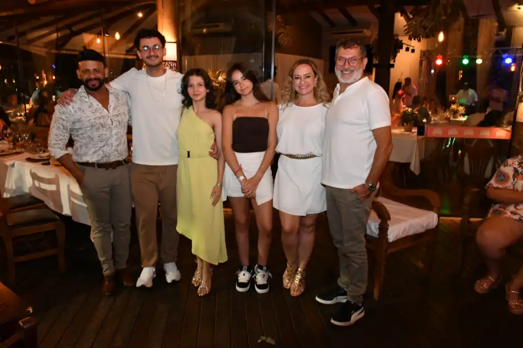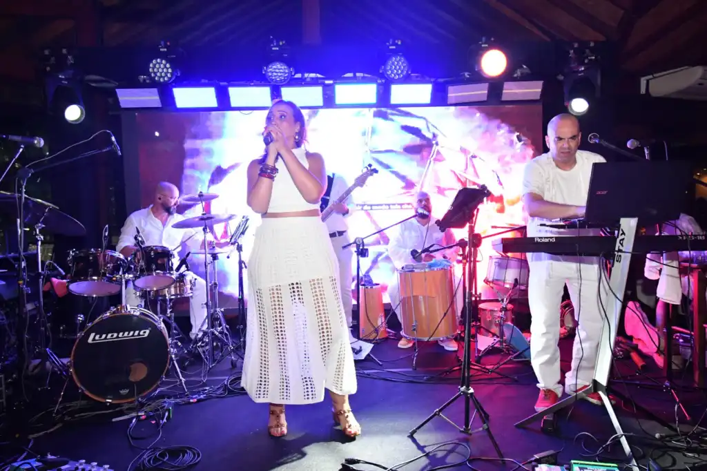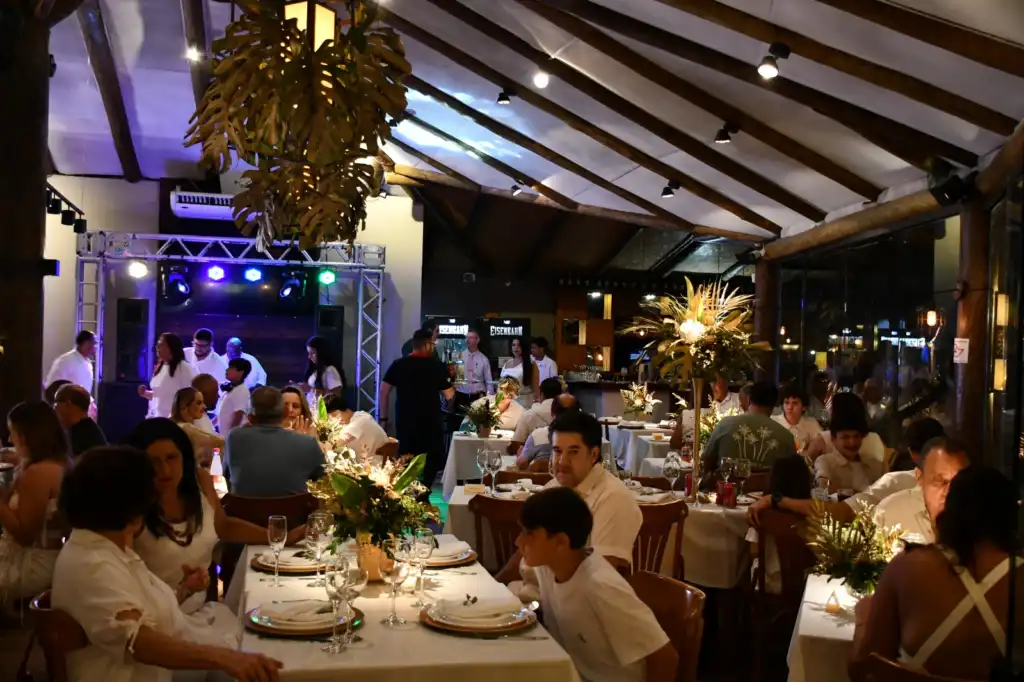 A noite foi marcada por uma gastronomia impecável, distribuída em sete ilhas exclusivas: seleção de queijos e antepastos com coquetel de camarão, ilha de saladas, ilha de acompanhamentos, ilha de carnes, estação de comida japonesa, além de uma ampla mesa de sobremesas e doces finos. Para completar, bebidas alcoólicas all inclusive circularam à vontade, garantindo a celebração perfeita.