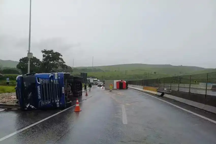 Na tarde desta terça-feira (3), dois caminhões colidiram na Rodovia Presidente Dutra deixando três pessoas feridas. O acidente ocorreu no trecho de Cachoeira Paulista causando interdições no local.