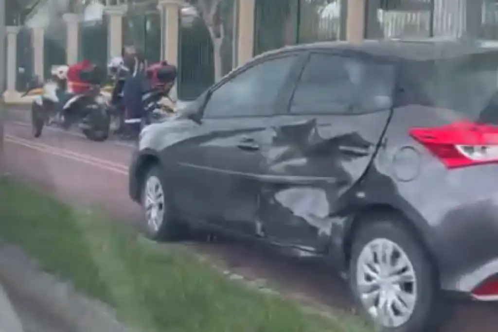 De acordo com informações preliminares, a motocicleta colidiu com a lateral de um carro modelo Toyota de cor cinza, atingindo especialmente a porta do lado do passageiro. As imagens registradas no local mostram que a moto sofreu danos na parte frontal após o impacto.