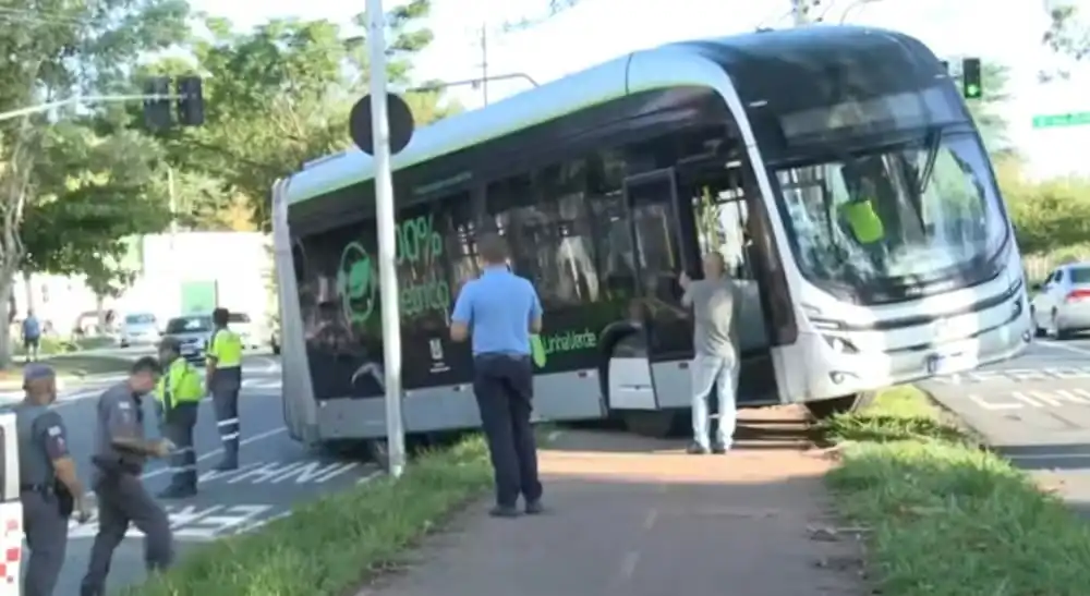 O motorista da Linha Verde tentou desviar e acabou subindo na pista de ciclovia, para não atingir o veículo. Um homem que estava no carro teve ferimentos leves e foi socorrido. Os outros envolvidos no acidente não se feriram.