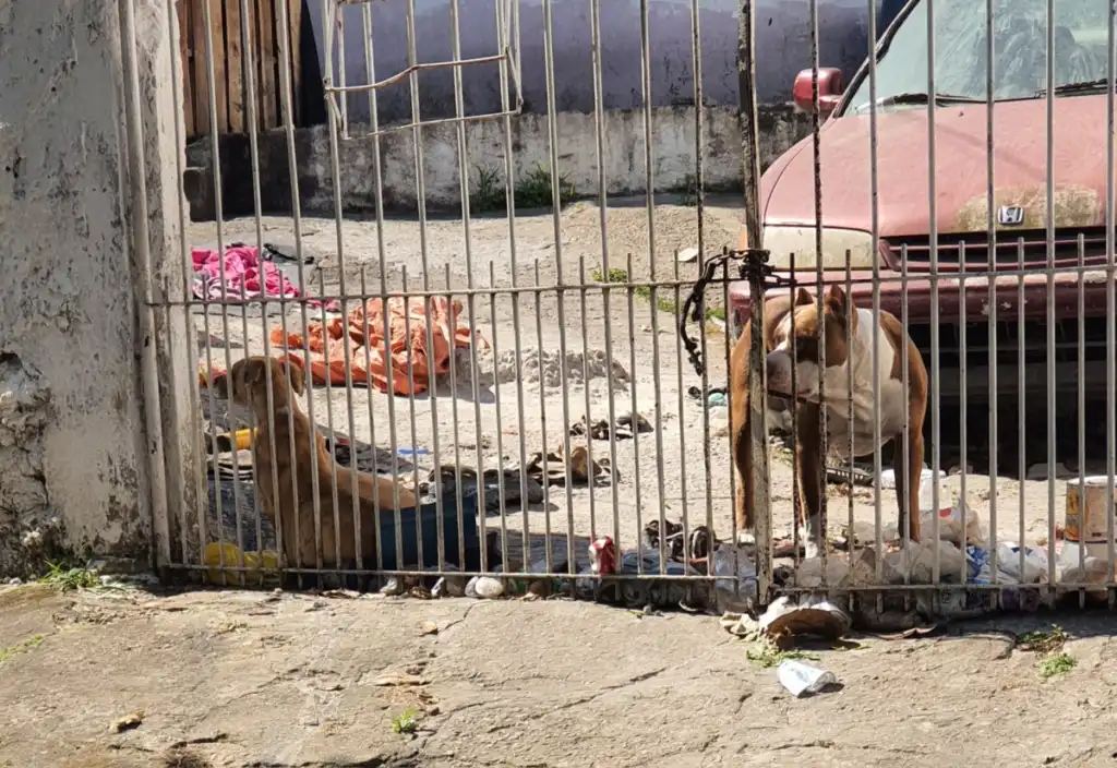Uma fêmea caramelo e um macho Pitbull estavam na casa. Os vizinhos afirmam que os animais enfrentam essa situação há pelo menos dois meses. Os moradores relatam que os animais viviam em condições insalubres