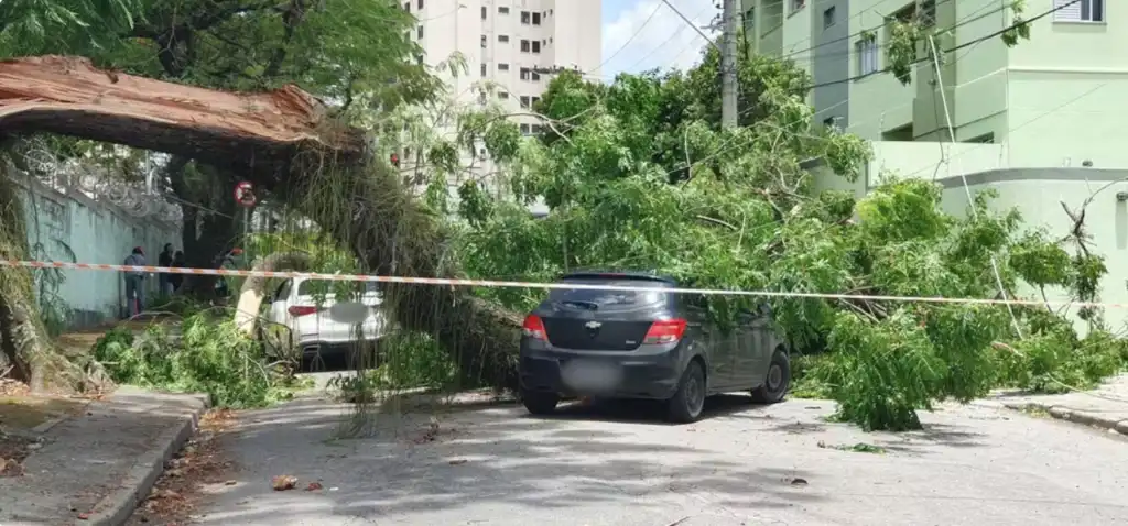 Uma árvore de grande porte caiu na tarde desta quarta-feira (10) e atingiu dois carros na Rua Quixadá, no Parque Industrial, em São José dos Campos. Não há informações de vítimas.