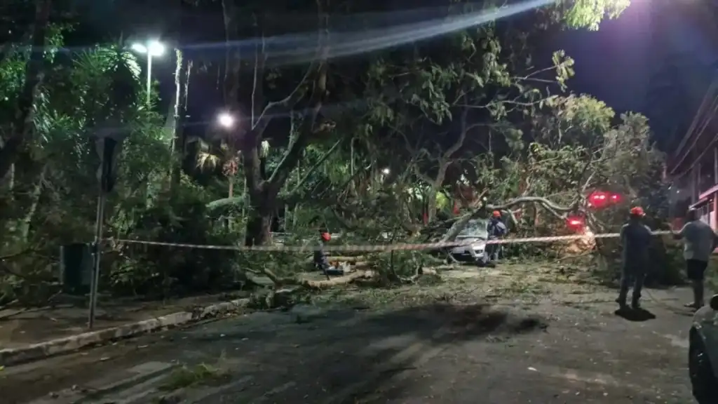 Árvore de grande porte cai e atinge três carros na Vila Industrial em São José