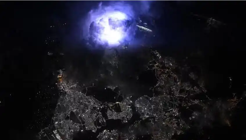 Astronautas a bordo da Estação Espacial Internacional (ISS) conseguiram capturar uma tempestade de raios iluminando o céu de Singapura, na Ásia. A imagem, feita no dia 15 de junho, mostra explosões intensas de luz atravessando uma cobertura de nuvens na região.