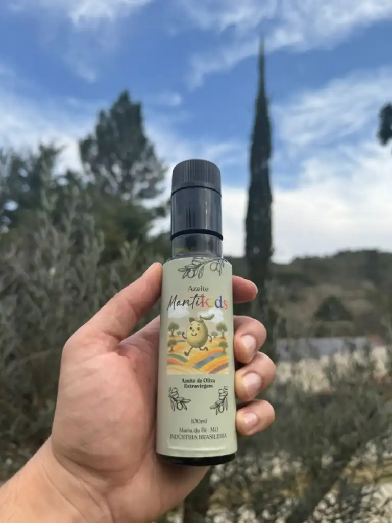 Produzido a partir da variedade espanhola Arbequina, o MantiKids nasce no olival mais alto do Brasil, em Maria da Fé (MG), a 1.900 metros de altitude. É ali que a Vinícola Essenza realiza todas as etapas do processo — do plantio ao manejo, da colheita à extração. O resultado é um azeite de baixa acidez (0,08%) e perfil sensorial delicado, sem amargor ou picância, ideal para o paladar das crianças.