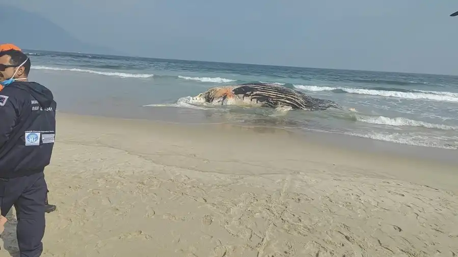 Baleia é encontrada morta na Praia de Guaecá em São Sebastião