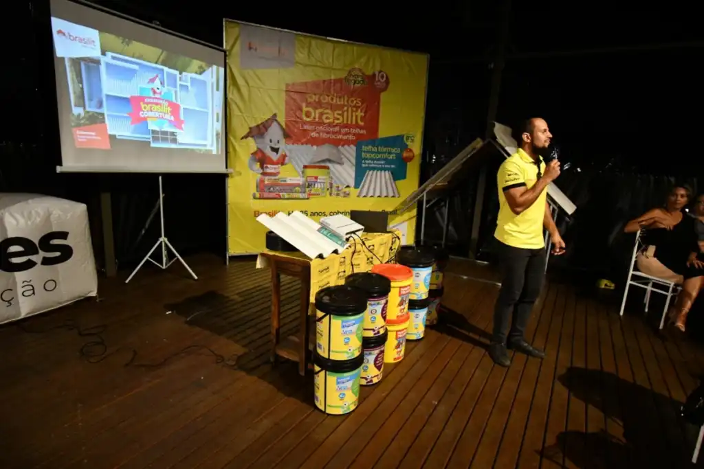 Dielton Osório apresentou um talk sobre fibrocimento Brasilit e mostrou as vantagens da telha térmica Topcomfort, onde após os convidados puderam tirar dúvidas sobre a mesma.