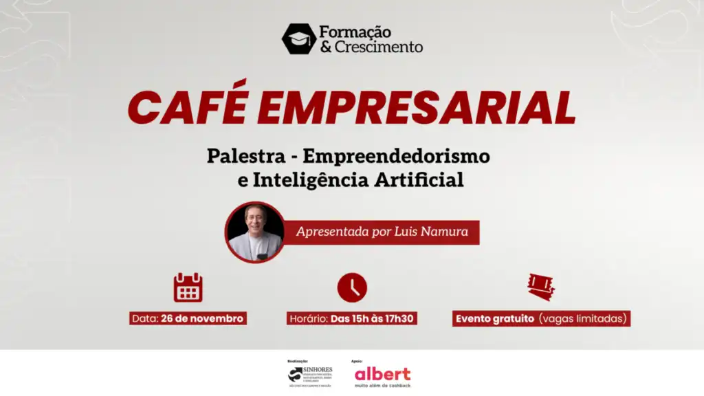 Café Empresarial: Sinhores realiza palestra gratuita sobre empreededorismo e inteligência artificial com Luis Namura