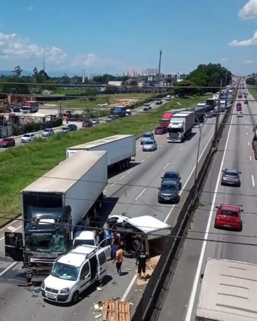 Um caminhão, uma carreta e dois carros se envolveram em um acidente na Dutra, na tarde desta segunda-feira (25), no trecho de Jacareí. Ninguém se feriu e não houve queda de carga.