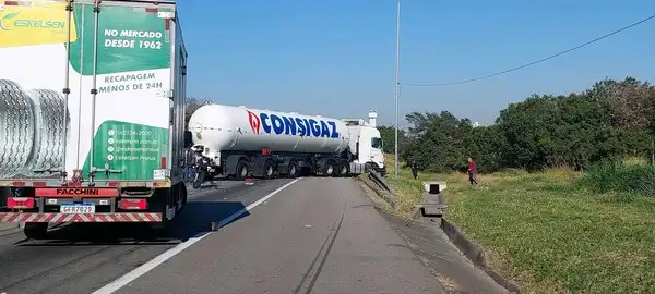 A CCR RioSP foi até o local para desobstruir a via e informou que não houve derramamento de carga. O congestionamento chegou a dois quilômetros.