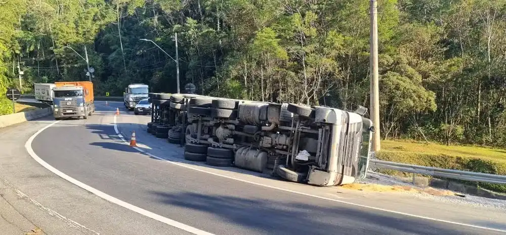 No começo da manhã desta sexta-feira (22), uma carreta que carregava 36 toneladas de brita, tombou na descida da Serra da Rodovia dos Tamoios, na altura do Km 70. O acidente ocorreu por volta das 7h e causou lentidão em alguns pontos da rodovia.