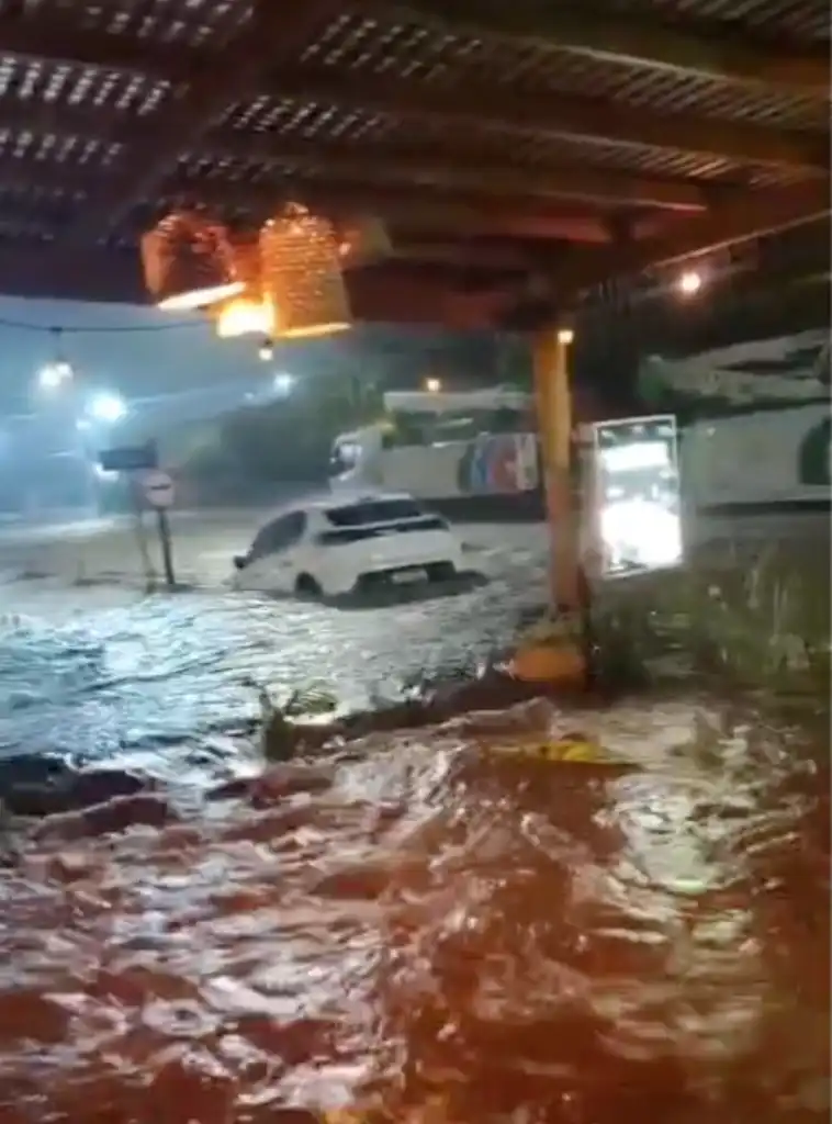 Carro é arrastado pela força da água durante tempestade em Ilhabela