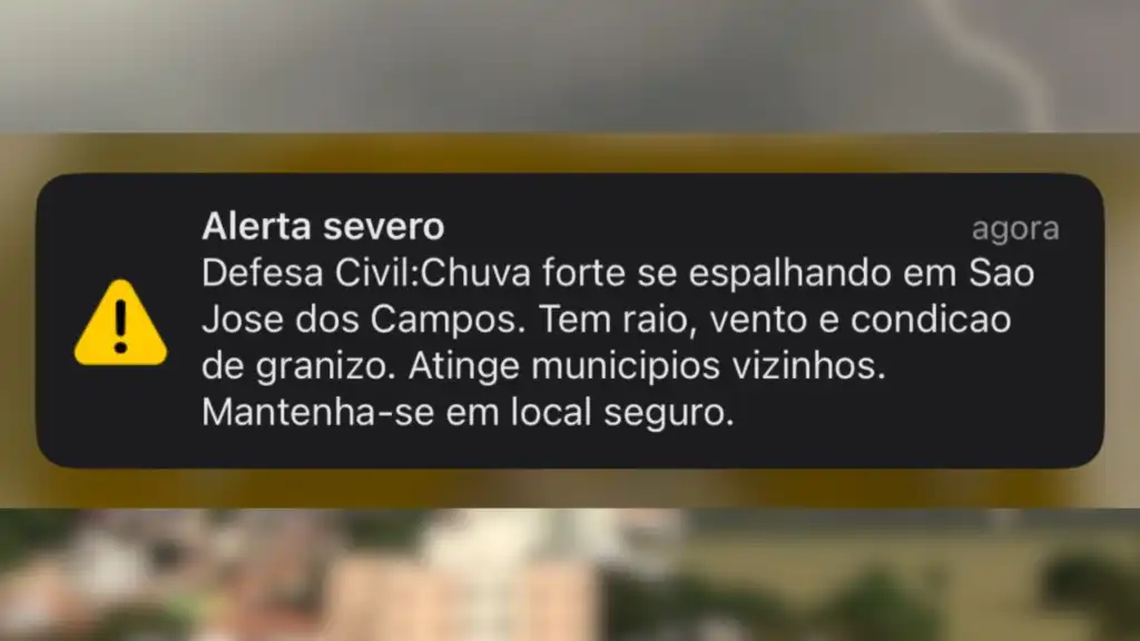 Os celulares dos moradores de São José dos Campos receberam um alerta de tempestade da Defesa Civil no final da tarde desta terça-feira (13). Há possibilidade de cair raio e granizo.