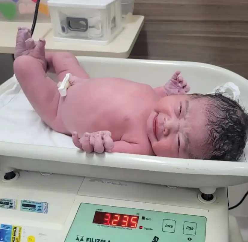 Eloá chegou às 00h54 do dia 1º de janeiro de 2025, pesando 3,235 quilos e com 49 centímetros.