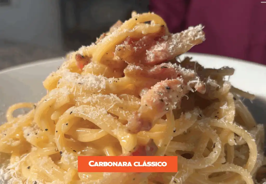 Carbonara feito com maestria e técnica e com insumos italianos autênticos, como manda o figurino.