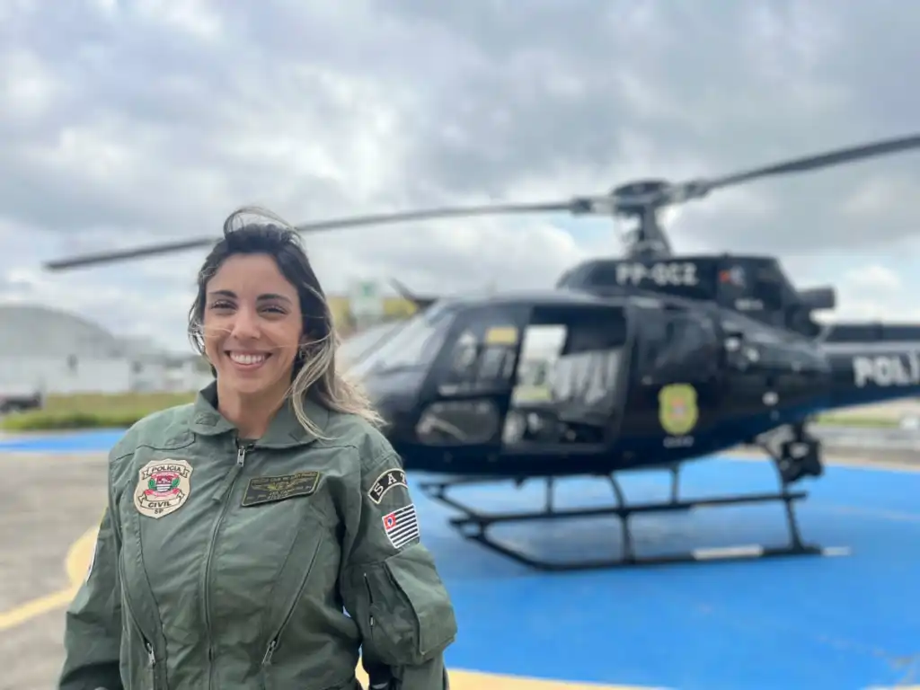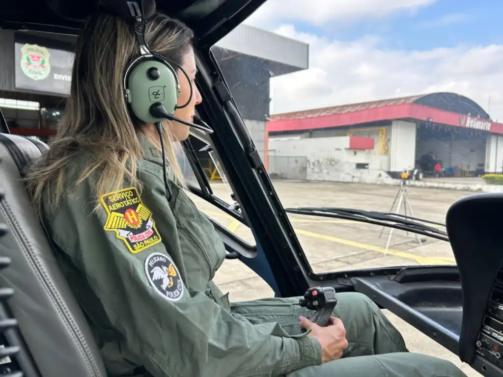 Delegada de SP é a primeira mulher a pilotar helicóptero da Polícia Civil