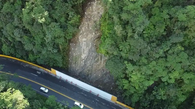 Com investimento de R$ 3,9 milhões, o DER concluiu ainda obra emergencial em Bertioga, no litoral paulista. Foram realizados serviços de limpeza e desobstrução, em trecho localizado na altura do km 83,3 da Rodovia Dom Paulo Rolim Loureiro (SP 098), a Mogi-Bertioga, na pista sentido norte. A operação incluiu a detonação de rocha, implantação de muro de concreto e o chamado grampeamento do talude, técnica de engenharia usada para conferir maior estabilidade ao solo de determinado trecho de encosta.