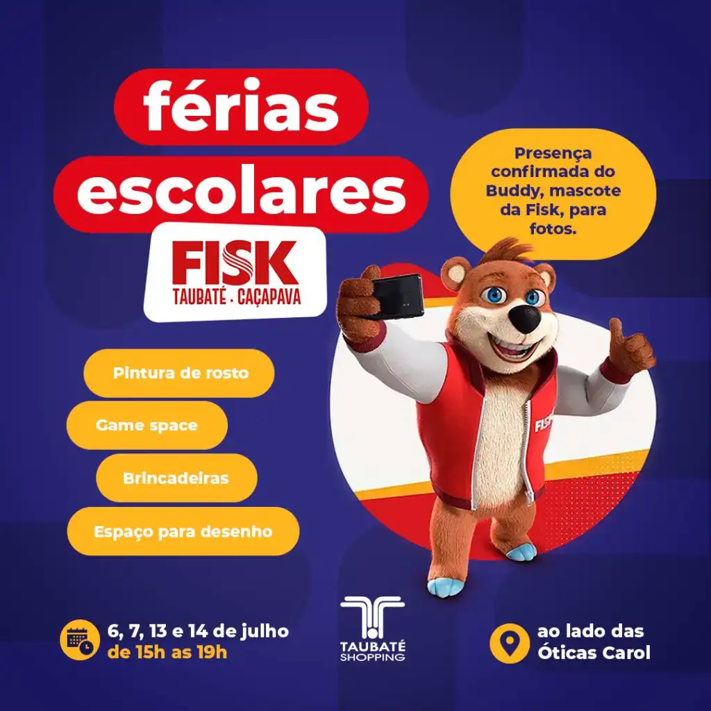 No sábado (6) e no domingo (7), das 15h às 19h, as crianças poderão participar de atividades recreativas variadas, como pintura facial, espaço para jogos e brincadeiras. A ação faz parte do Fisk Land, promovido pela escola de idiomas Fisk, que preparou dias especiais para proporcionar muita diversão, incluindo a presença do Buddy, mascote da escola, durante todos os dias de evento, e do personagem Batman de Taubaté, que marcará presença nos dois primeiros dias de atividades. A ação é gratuita e acontece ao lado das Óticas Carol.