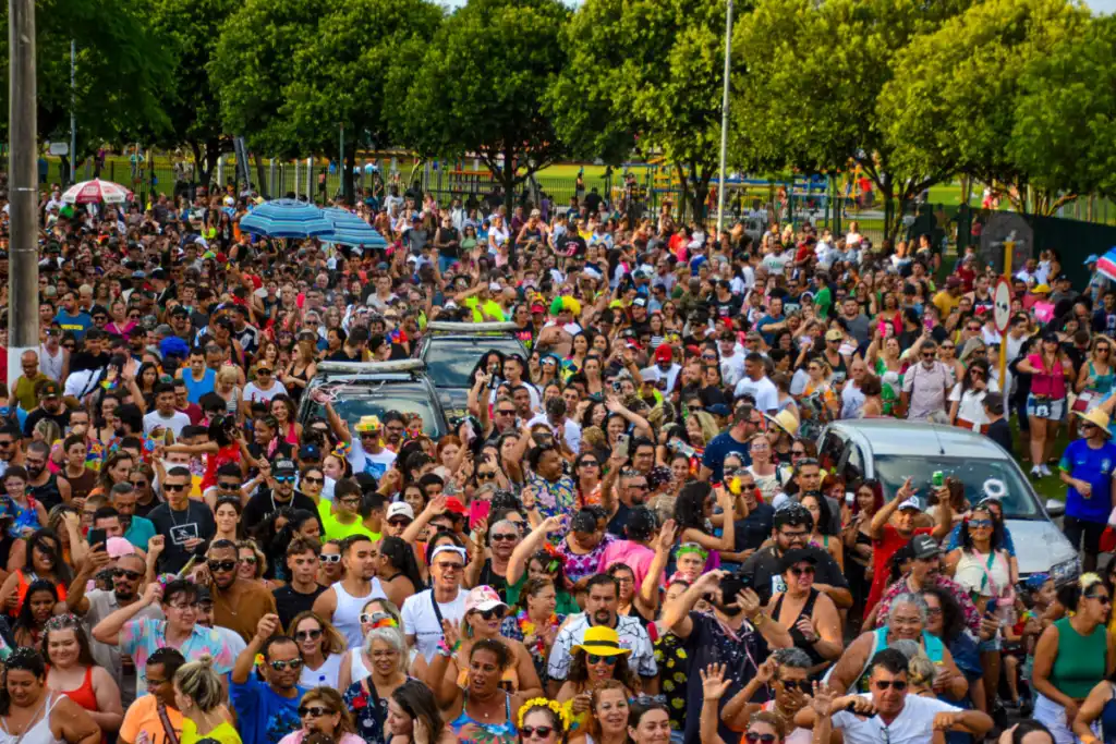 No período da tarde, a programação retorna às 14h30 com nova concentração. Às 15h, o Bloco da Pri Coutto sobe ao palco trazendo um repertório animado e eclético. Às 17h30, é a vez da banda Pelados em Jacareí, que mantém o clima de festa no parque.