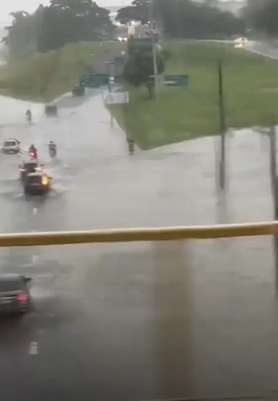 Um vídeo publicado no Instagram mostra a entrada do Vista Verde, em São José dos Campos, alagada por causa das fortes chuvas que atingem a região na tarde desta quinta-feira (13).