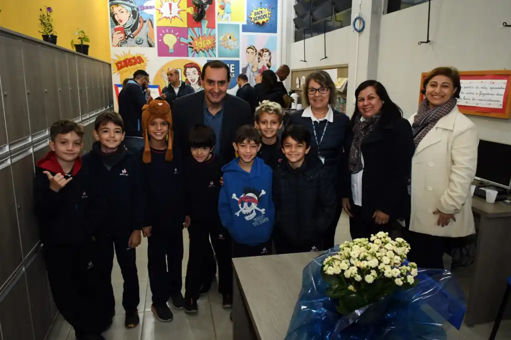 Primeiramente, ele foi recebido pelas diretoras da escola, onde foi acompanhado até o auditório, lá, foi recepcionado pela equipe pedagógica e pelos alunos do Ensino Fundamental Anos Finais. Os alunos realizaram diversas perguntas que foram prontamente respondidas pelo Prefeito.