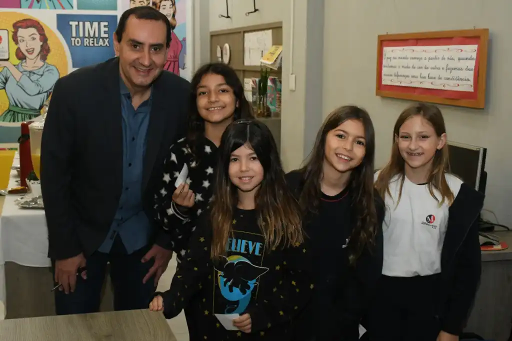 O segundo compromisso foi um delicioso café da manhã com direito a conceder autógrafos para os alunos do Ensino Fundamental Anos Iniciais que estão estudando a história da nossa cidade.