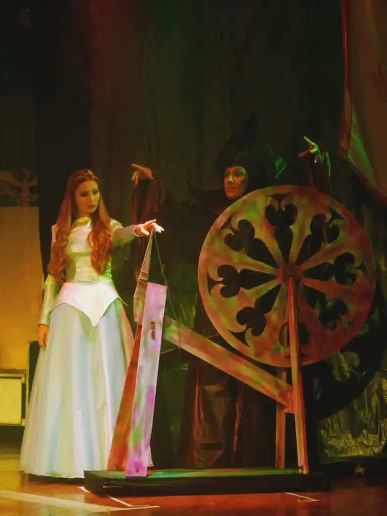 A superprodução possui 09 ambientes cenográficos, vinte personagens com figurinos medievais e toda a magia do teatro aliada a efeitos especiais, como a transformação da Malévola em um Dragão, que se movimenta pelo palco com efeitos pirotécnicos. O dragão em cena terá 4 metros de altura e se movimentará pelo palco, encantando o público.
