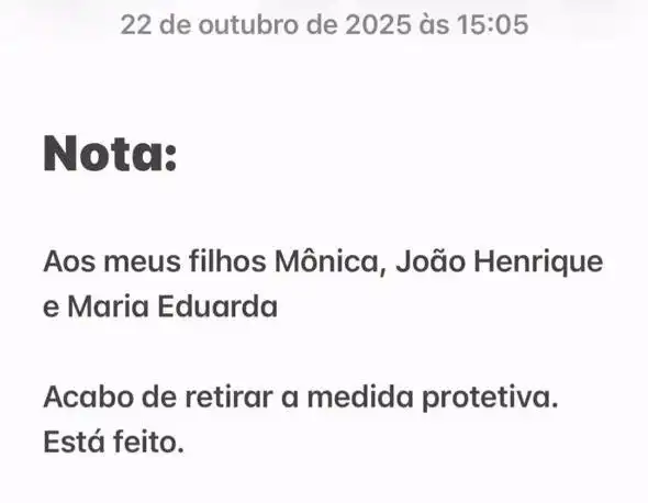 A ex-primeira dama de São José dos Campos, Sheila Thomaz, usou sua rede social hoje (22) para anunciar que retirou o pedido de medida protetiva contra seu ex-marido, o prefeito Anderson Farias. Na postagem ela cita os filhos e que a decisão já havia sido efetivada.