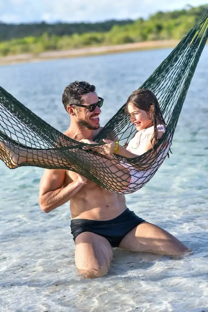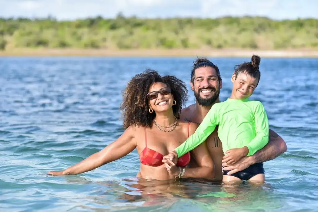 água cristalina e mineral. Famosos dentre, José Loreto que levou a filha, a atriz Sheron Menezes acompanhada do marido e do filho a atriz Larissa Bocchino e o ator Dudu Azevedo.