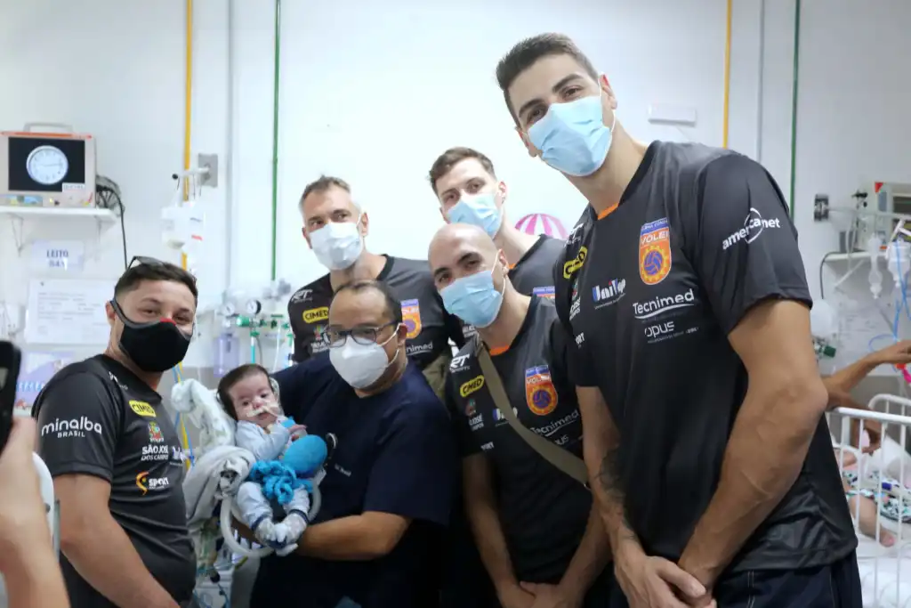O time do Farma Conde Vôlei São José dos Campos visitou, nesta sexta-feira (29), crianças internadas na pediatria do Hospital Municipal.