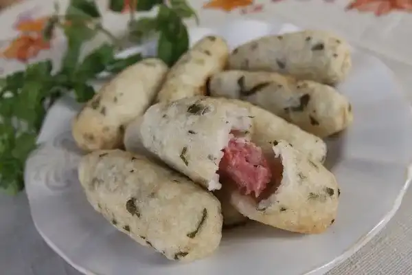 A grande tradição é o bolinho caipira feito de farinha branca para a massa e recheio de linguiça