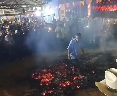 Fiel caminha descalço sobre brasas em último dia de Festa de São João em São José dos Campos