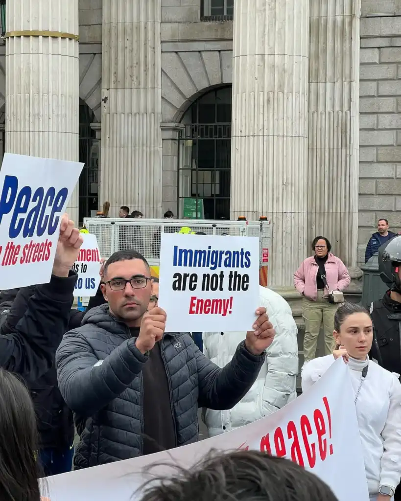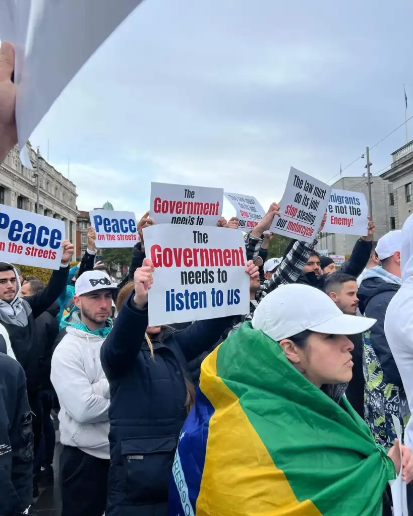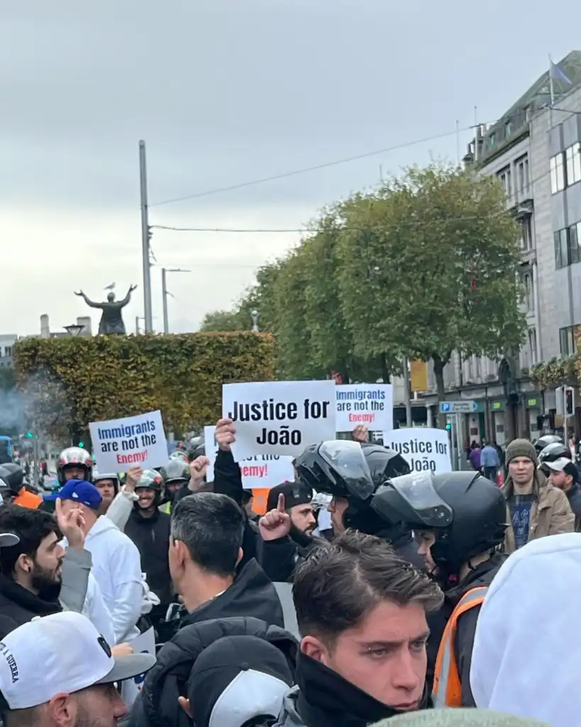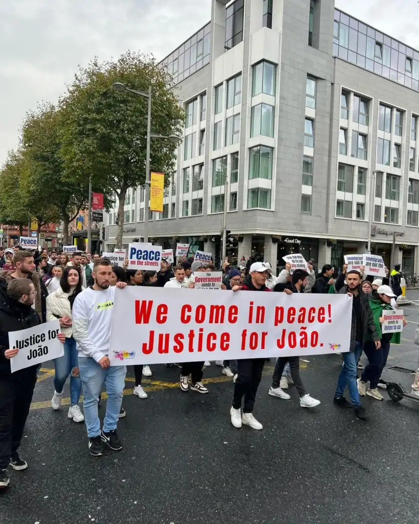 Moradores de Dublin foram às ruas nesta segunda-feira (30) em busca de Justiça por João. Com placas com dizeres de que imigrantes não são inimigos e que “vieram em Paz”.