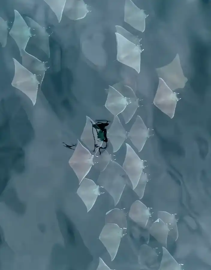 Fotógrafo registra cardume de raias em Ilhabela