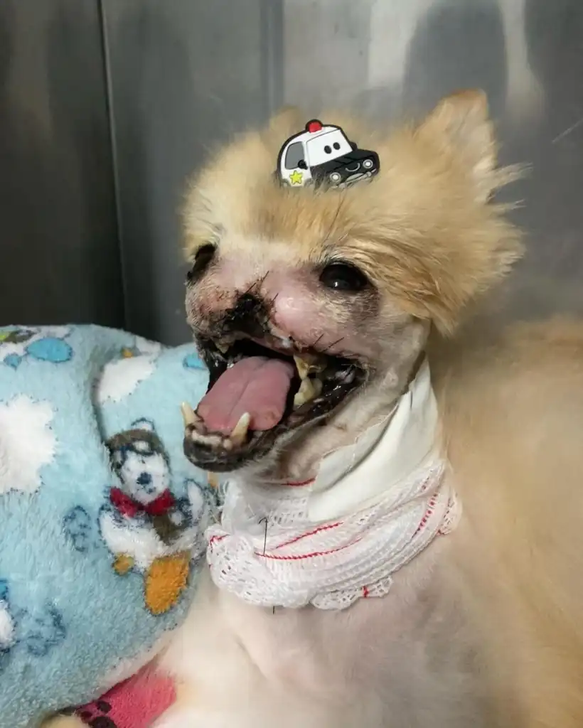 O spitz alemão, Fox, que sofreu um ataque e teve o focinho arrancado por um bull terrier foi transferido para um hospital veterinário especializado em…