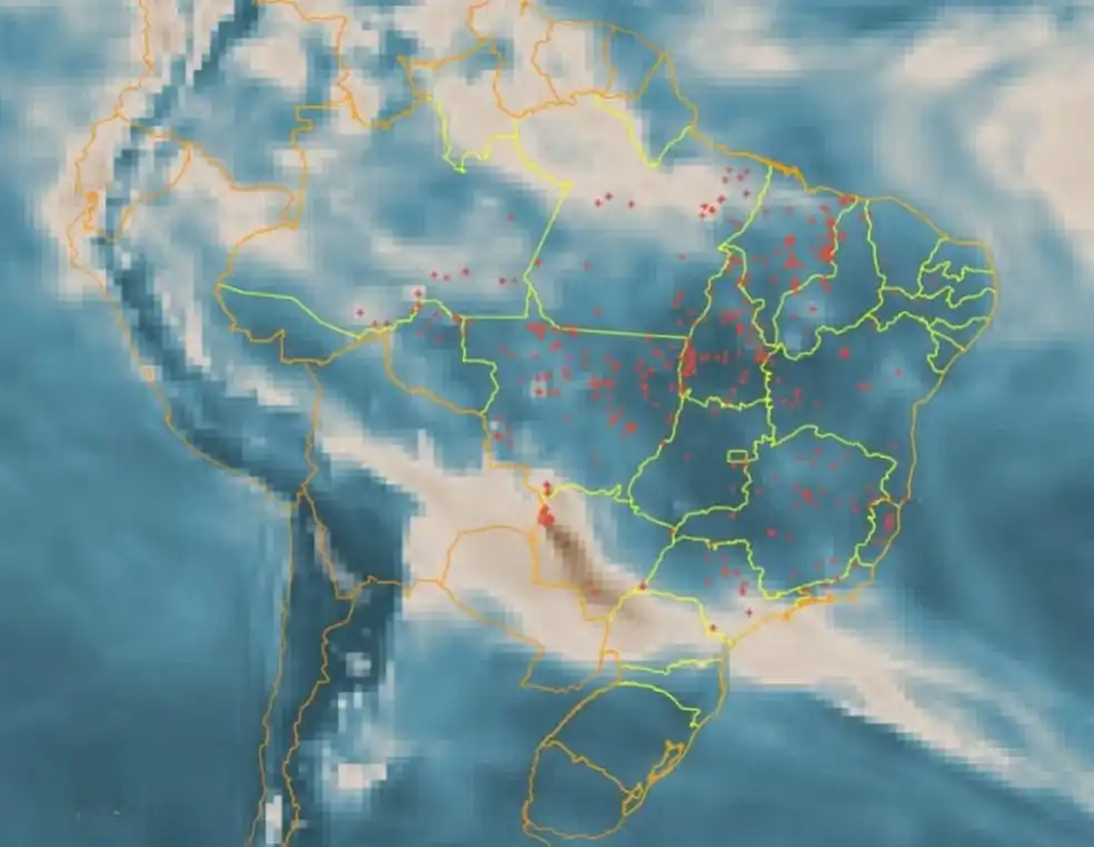 De acordo com imagens de satélite do Programa de Queimadas do Instituto Nacional de Pesquisas Espaciais (INPE), a fumaça das queimadas registradas no Pantanal do Mato Grosso do Sul chegaram a região.
