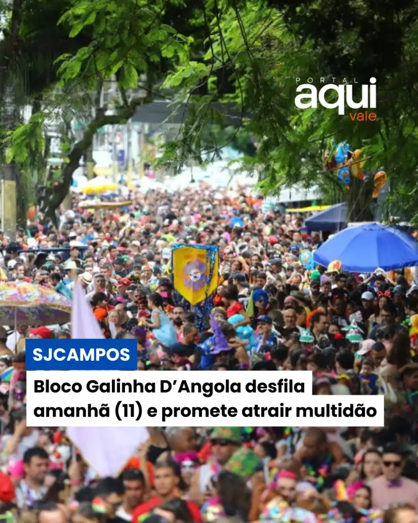 O Bloco Galinha D’Angola vai comemorar seus 10 anos com um desfile pelas ruas da Vila Adyana, na região central de São José dos Campos, no domingo de Carnaval (11).