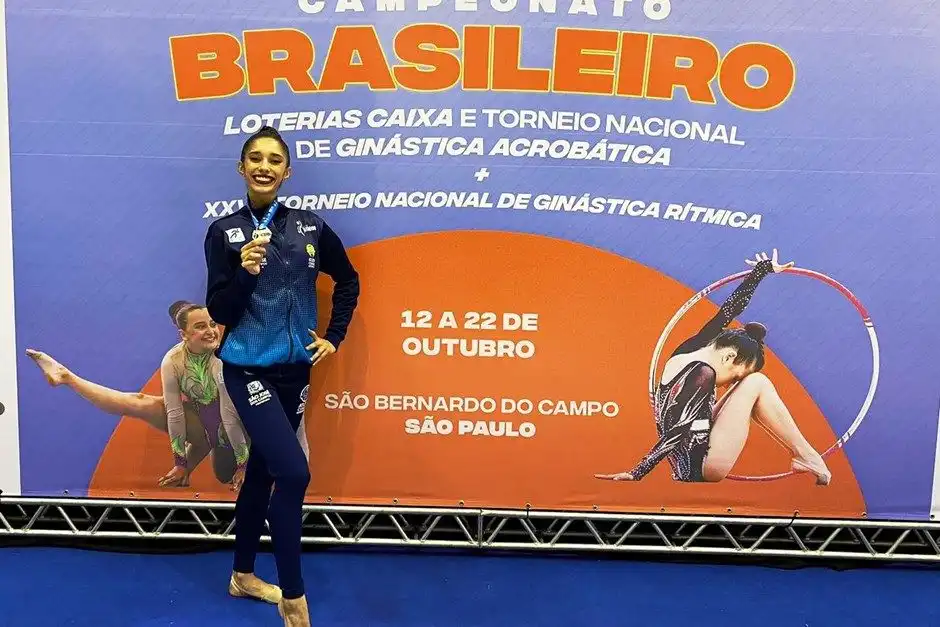 A ginasta Raissa Prado da Cruz, da equipe de ginástica rítmica de São José dos Campos, conquistou a medalha de prata no aparelho fita no…