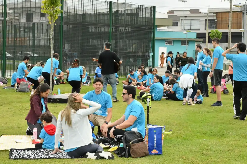 Das 9h às 11h da manhã, todos os envolvidos participaram de uma caminhada em família, aulas de alongamento e outras atividades ao ar livre.