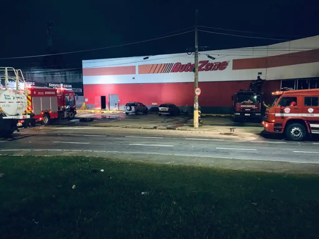 Incêndio atinge telhado de loja de autopeças na madrugada desta sexta (15) em Caraguatatuba