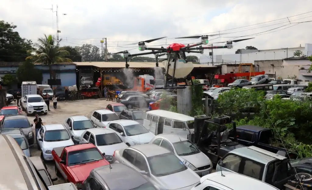 Serão utilizados dois modelos de drones desenvolvidos pela empresa contratada: um drone especializado na captação de imagens e vídeos para mapeamento das áreas e um drone de pulverização de larvicida, oferecendo uma solução mais eficiente e sustentável.