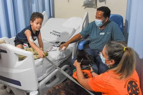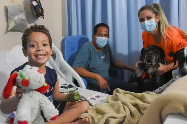 Eles fazem parte de um programa do hospital, com o auxílio de voluntários e uma médica veterinária para levar alegria a todos durante um período mais delicado de suas vidas.