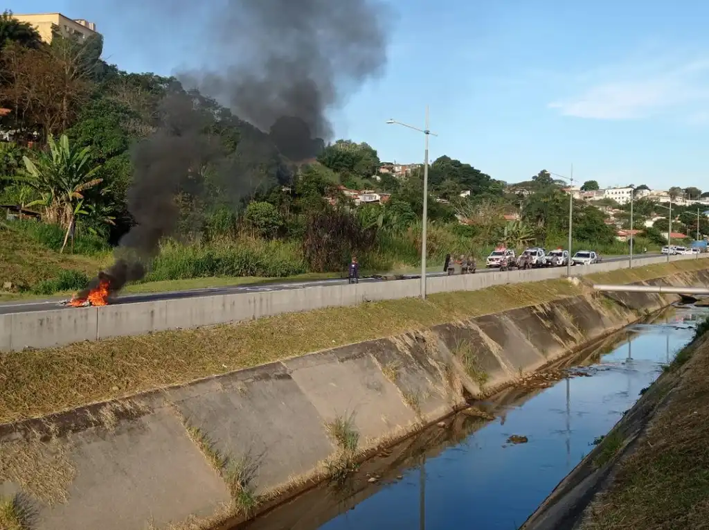 Pelo menos 14 viaturas da Polícia Militar estiveram no local, além do Corpo de Bombeiros para conter as chamas e agentes da Mobilidade Urbana. A via foi liberada às 16h50.