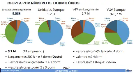 Segundo o levantamento da entidade, São José dos Campos conta com 4.068 apartamentos em lançamento, incluindo opções de 1 até 5 dormitórios e preços que variam de R$ 300 mil a R$ 3,5 milhões, atendendo a diferentes perfis de compradores.