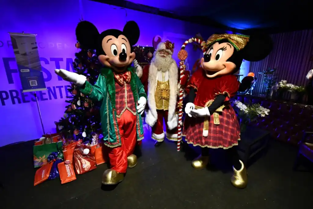 No último final de semana nem a chuva conseguiu acabar com a festa da chegada do Papai Noel no Madrid Open Mall, o bom velhinho chegou acompanhado da Minie e do Mickey embalados por uma bandinha de Natal.