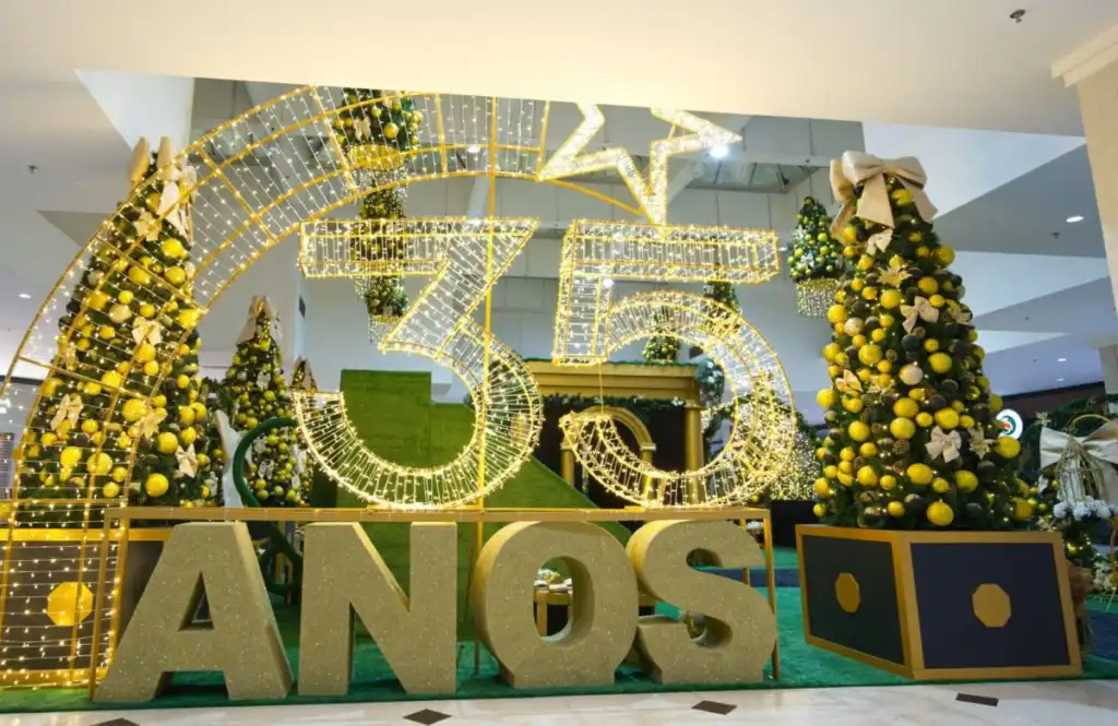A decoração natalina, com tons de preto e dourado, fez uma homenagem à trajetória de sucesso do shopping ao longo de suas três décadas e meia. Além do imponente trenó ornamental, os clientes puderam interagir com um gazebo com painel, escorregadores e até uma área instagramável, perfeita para fotos em família. O trono do Papai Noel, localizado em frente à loja Renner, foi o local ideal para registrar esses momentos especiais ao lado do bom velhinho.